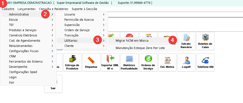- Acesse Cadastro > Utilitários > Migrar NCM em Massa